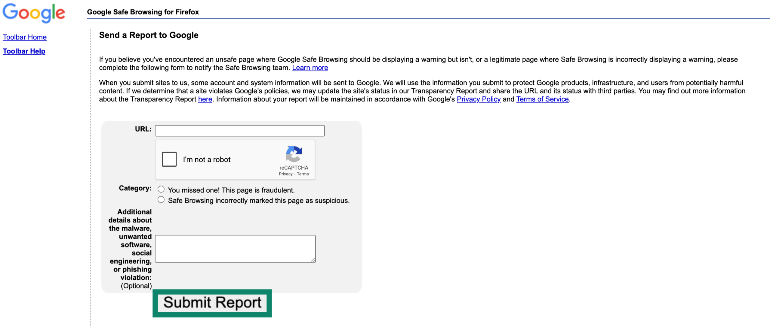 - Go to Google Safe Browsing Report and paste the suspicious URL (not the file itself; just the link to it).