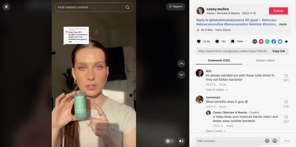 Strategische Produktplatzierungen in Geschäften und auch online, können Kunden dazu verleiten, mehr als ursprünglich geplant zu kaufen. Eine gängige Taktik von Marken ist es, dafür zu bezahlen, dass ihre Produkte in Fernsehsendungen und Filmen gezeigt werden. Sie bezahlen auch Influencer dafür, dass sie ihre Produkte in ihren Beiträgen auf Social Media verwenden, was die Kaufentscheidungen der Zuschauer erheblich beeinflussen kann. Hero Cosmetics zum Beispiel nutzt TikTok effektiv, um seine Zielgruppe anzusprechen.