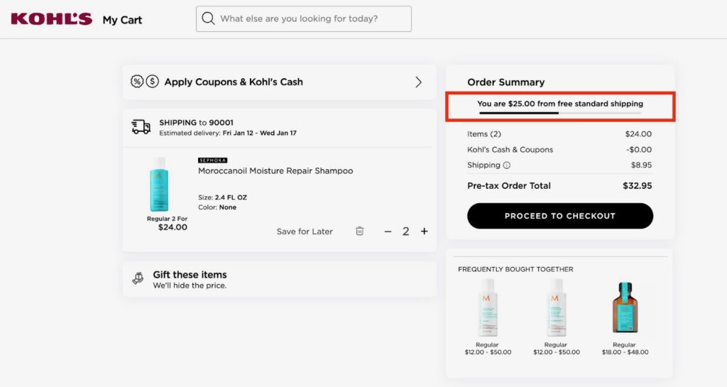Das Angebot eines kostenlosen oder Expressversands für Bestellungen ab einem bestimmten Wert motiviert Kunden, ihren Warenkorb weiter zu füllen, um die Bedingungen zu erfüllen. Zahlreiche Online-Lieferdienste für Mode, Lebensmittel und Speisen nutzen diese Strategie und bieten kostenlosen Versand für Bestellungen ab einem bestimmten Betrag. Dies führt oft dazu, dass Kunden zusätzliche Artikel in ihren Warenkorb legen und ungewollt mehr ausgeben, um vom kostenlosen Versand zu profitieren.