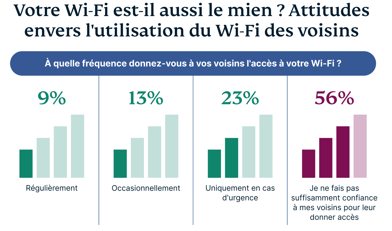 | Je n'ai jamais demandé à mon voisin ou à une personne vivant à proximité le mot de passe de son réseau Wi-Fi. | 58 % |