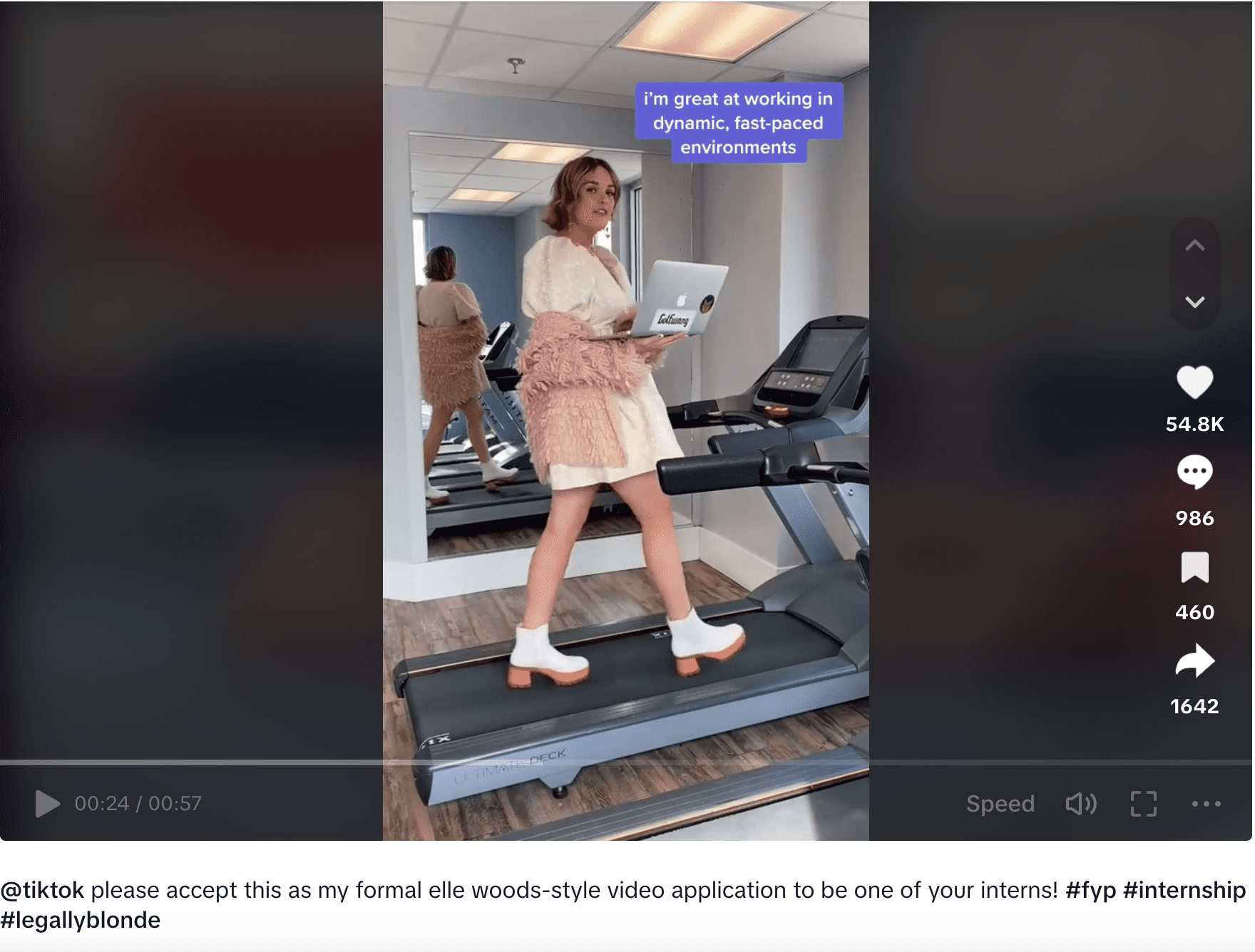 Kalli Roberts, 25 anni, ex studentessa della Brigham Young University nello Utah, è un'altra candidata il cui curriculum TikTok le è valso un'assunzione. Dopo aver pubblicato il proprio curriculum video ispirato a La rivincita delle bionde, è riuscita a ottenere uno stage presso TikTok stesso nel loro ufficio commerciale. "Sono bravissima a lavorare in ambienti dinamici e frenetici", dice mentre si trova su un tapis roulant.