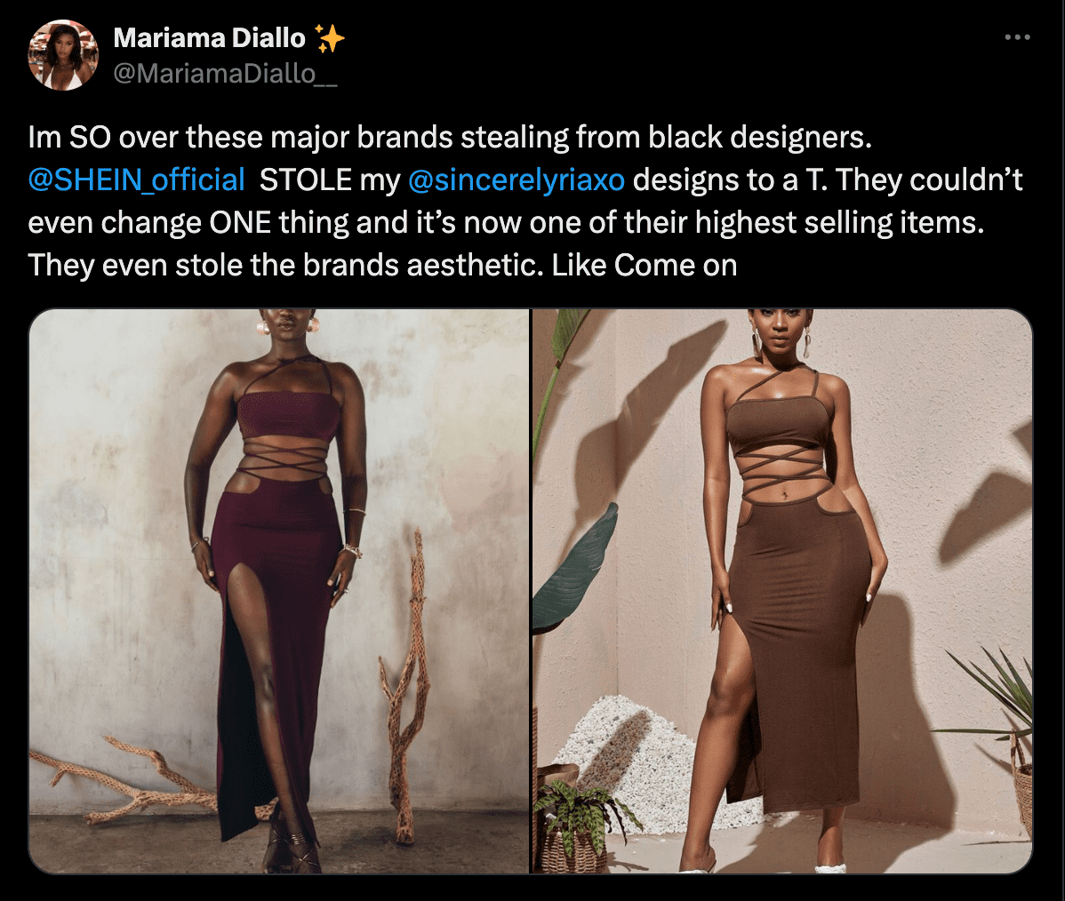 Shein is ook beschuldigd van het kopiëren van ontwerpen van onafhankelijke artiesten en kleine bedrijven. Verschillende ontwerpers hebben publiekelijk verklaard dat Shein hun originele werk heeft overgenomen en soortgelijke items in massaproductie heeft genomen zonder toestemming.