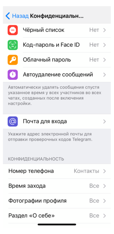 Telegram позволяет вам самим решать, кто видит те или иные ваши личные данные.