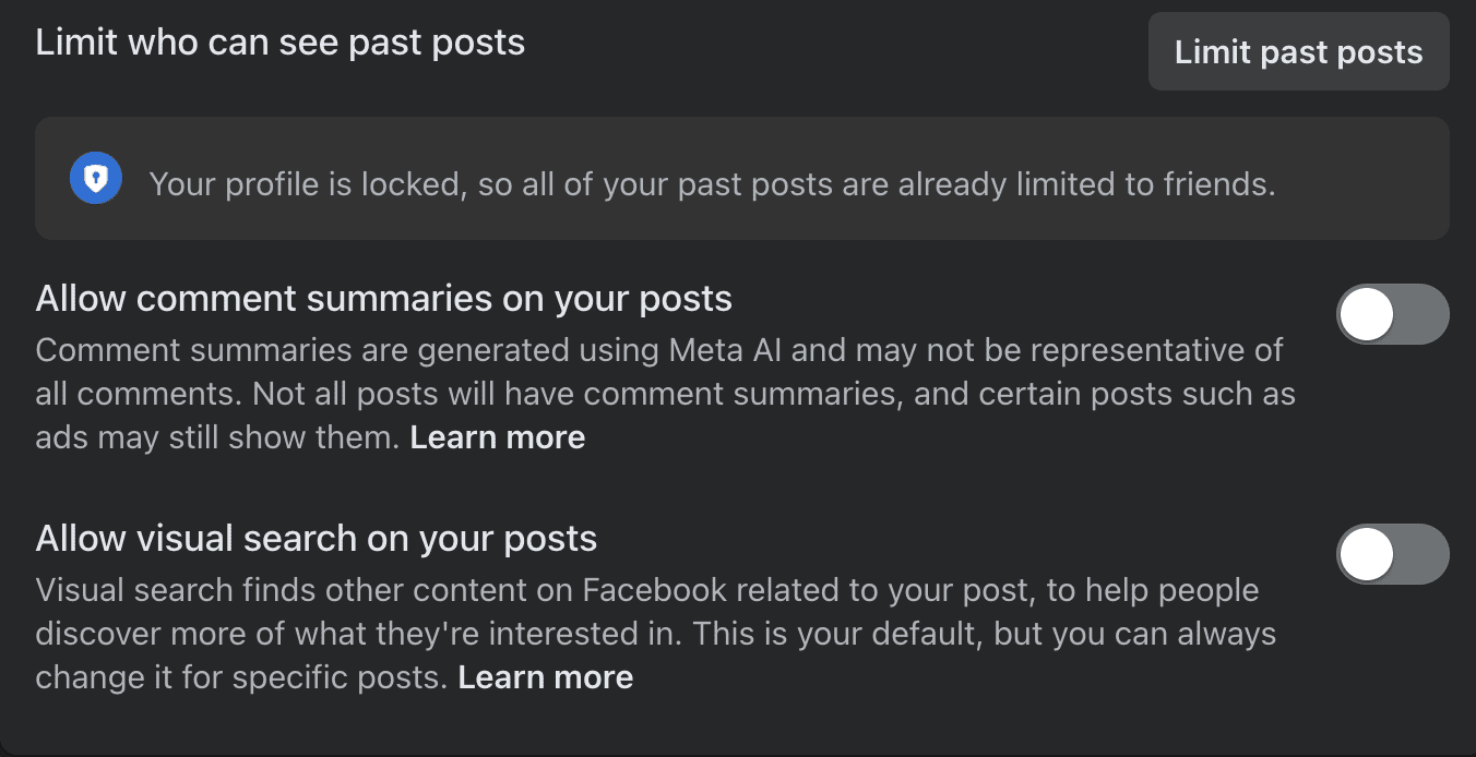 4. On the right, turn off the toggle for comment summaries on your posts.