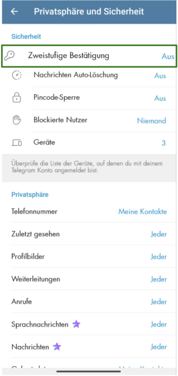 Eine der einfachsten Möglichkeiten, Dein Konto zu schützen, ist die Aktivierung der Zwei-Faktor-Authentifizierung (2FA) von Telegram. Dadurch wird es für Hacker erheblich schwieriger, auf Dein Konto zuzugreifen, selbst wenn sie Dein Passwort kennen. So aktivierst Du 2FA und optimierst Deine Datenschutzeinstellungen.
