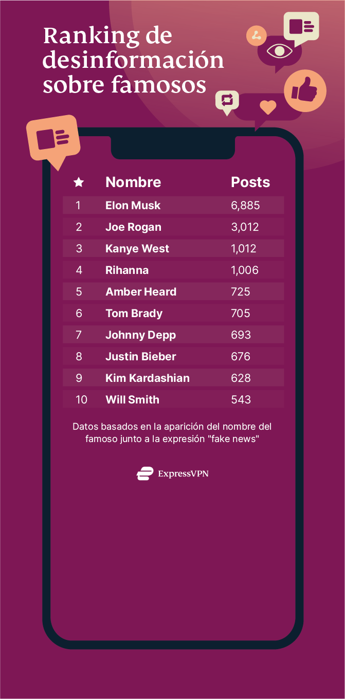 Clasificación: Los famosos más asociados con noticias falsas