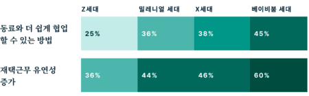 반면에 베이비 붐 세대는 쉬운 동료와의 협력, 재택근무 유연성을 메타버스에 대한 관심을 가지게 할 만한 요소라고 느낄 가능성이 가장 높습니다.