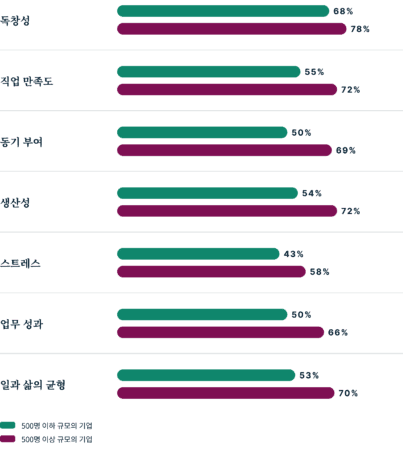 또한 대기업들은 메타버스 직장의 잠재적 이점에 대해 직원들을 교육하는 데 있어서도 해야 할 일이 있는 것으로 보입니다. 대기업의 직원들은 작은 기업의 직원들보다 메타버스 직장이 사생활에 미치는 영향을 더 경계하고 있기 때문입니다.