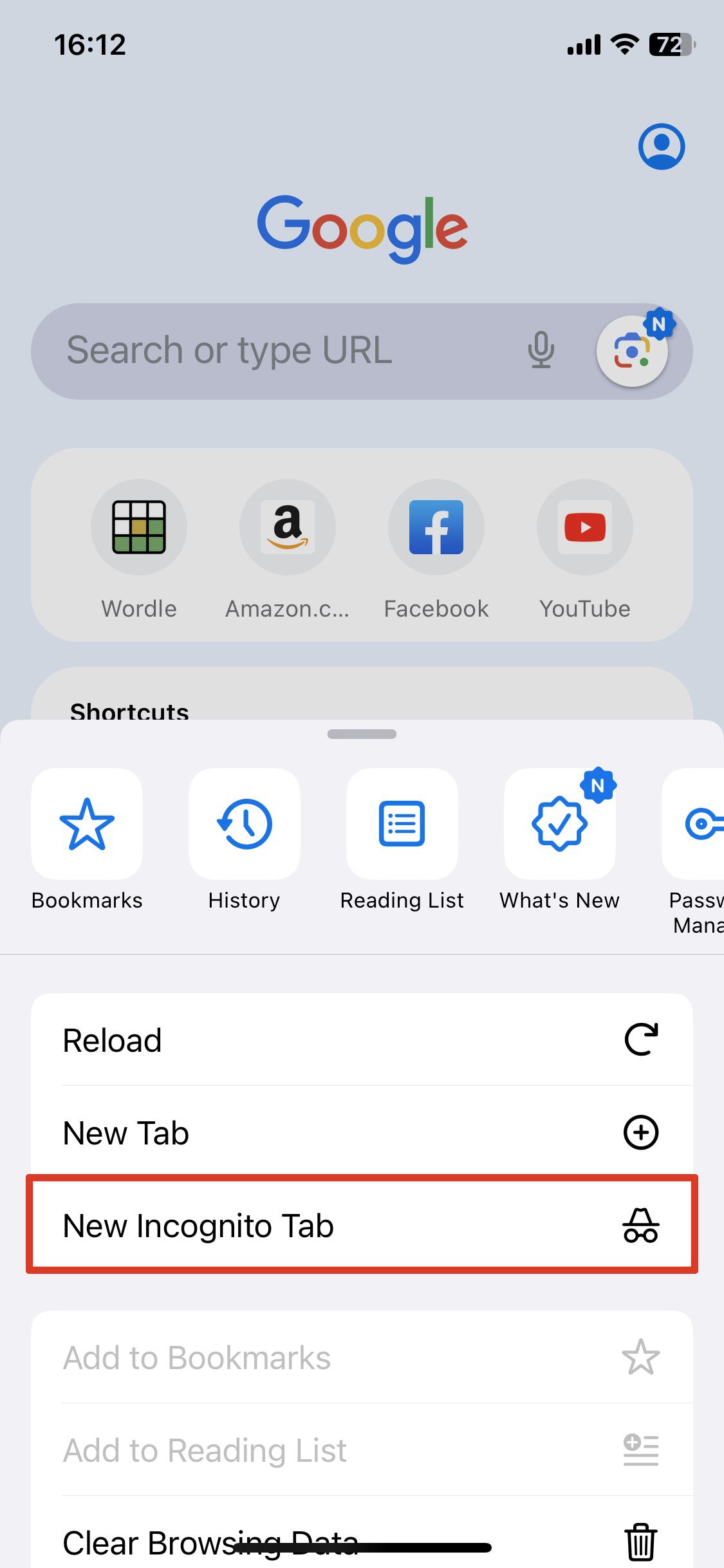 - 새 시크릿 탭을 탭하세요.