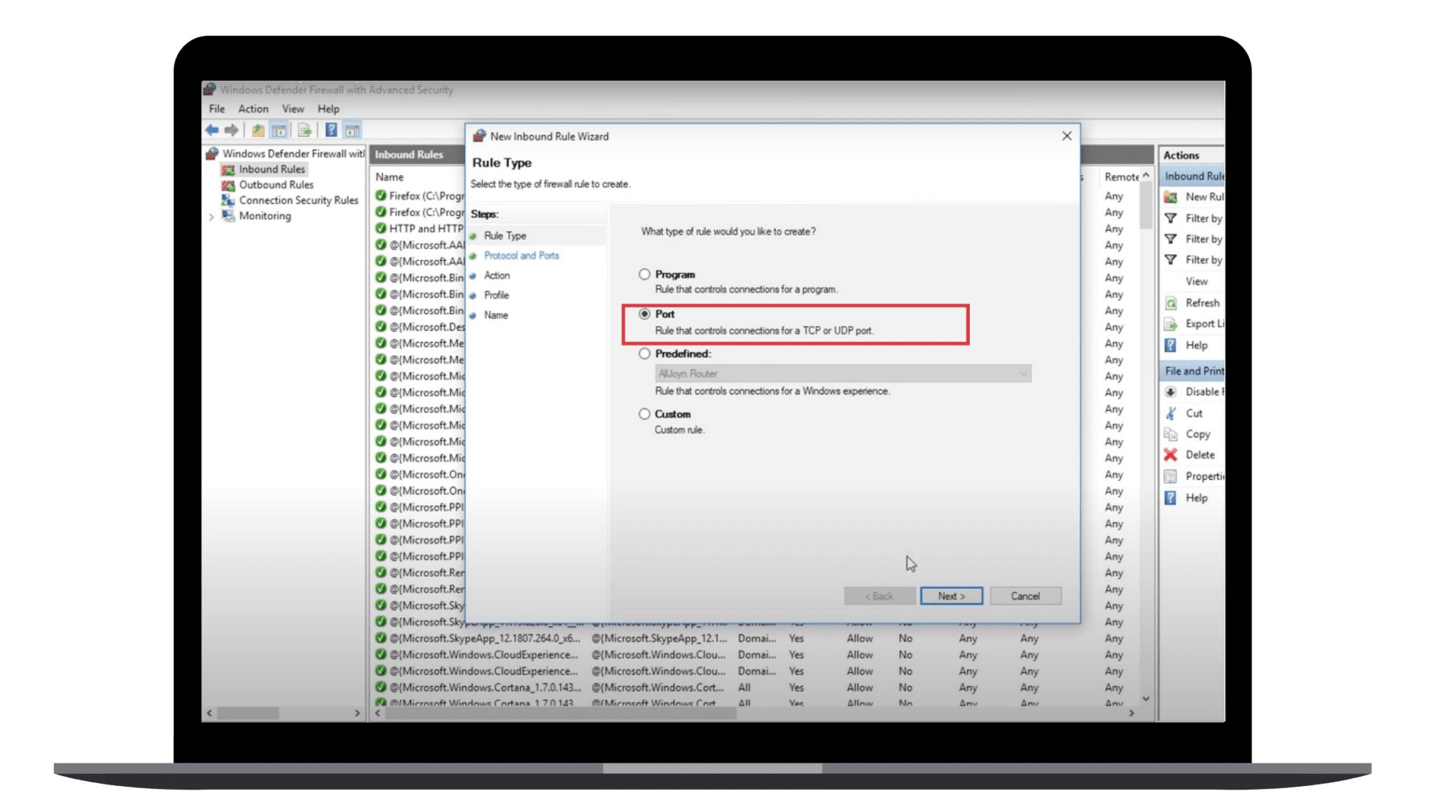 Het openen van poort 443 is iets ingewikkelder dan op de Mac. Dat komt omdat je het direct moet toevoegen aan de Windows Firewall. Om dit te doen: