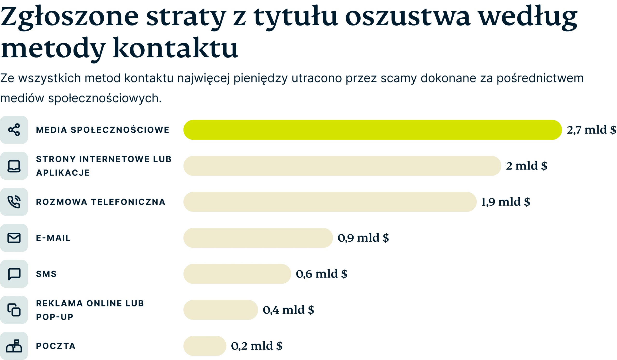 Platformy social mediów w 2023 r. były istnym rajem dla oszustów, przez których Amerykanie stracili 2,7 mld USD (chodzi o same przekręty w mediach społecznościowych). Scamerzy coraz częściej korzystają z tych platform ze względu na ich szeroki zasięg i nadużywają zaufania niczego nie podejrzewających użytkowników.