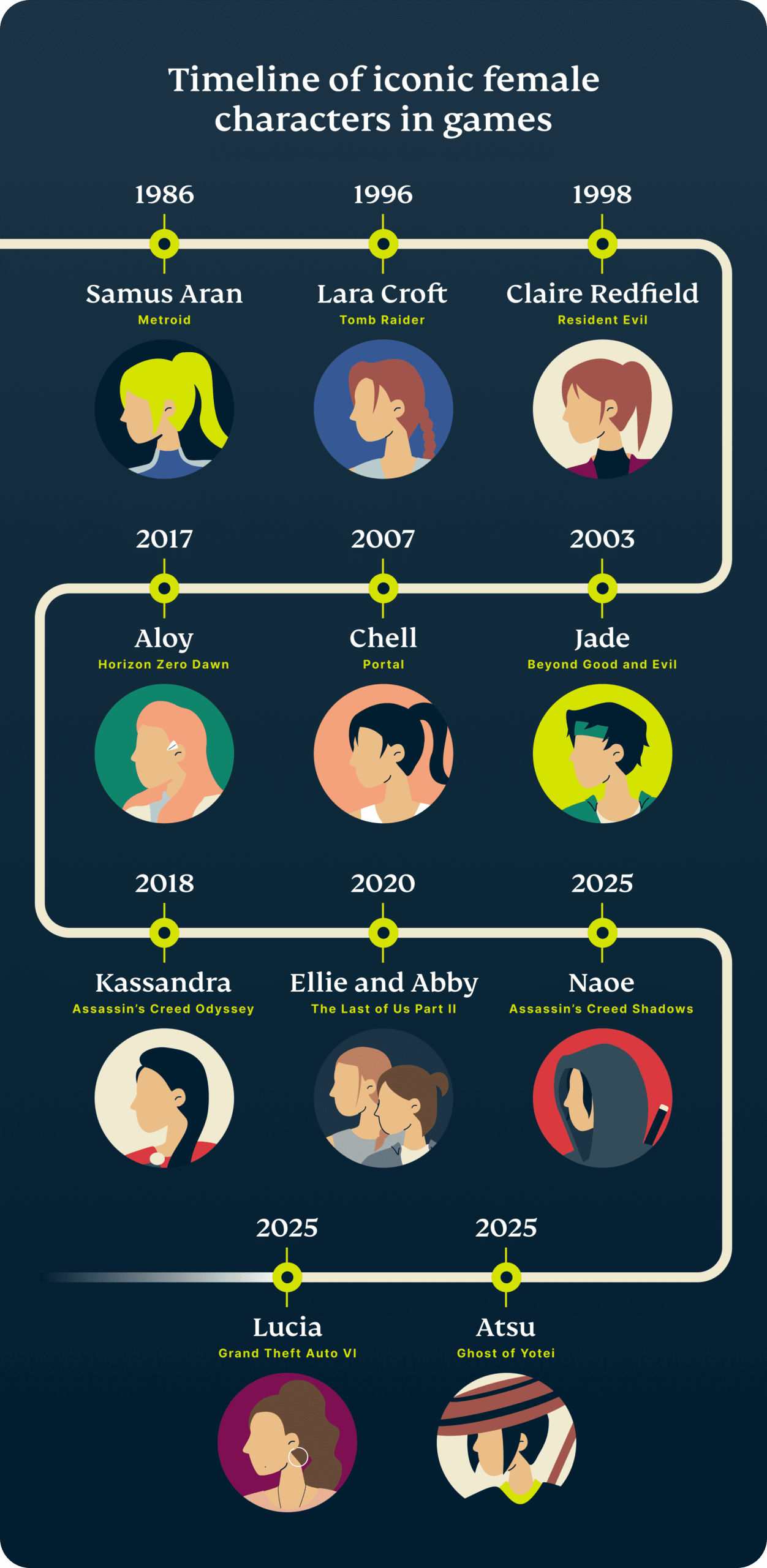 Hoje, protagonistas femininas estão liderando alguns dos maiores jogos da indústria, e suas histórias estão mais ricas do que nunca.
