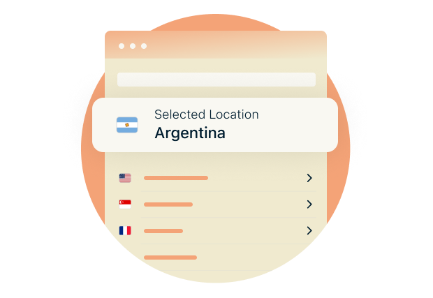 There’s no need to search for the best connection. Simply type “Argentina” in the server list and click or tap to connect. Our intuitive app will set you up with the optimal Argentina IP for speeds and performance.